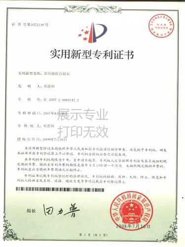 多功能组合厨具专利证书